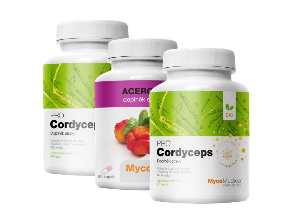 Tato sada spojuje dvě balení Cordyceps PRO v BIO kvalitě s přírodním vitamínem C z Aceroly a je určena pro systematické a dlouhodobé užívání.