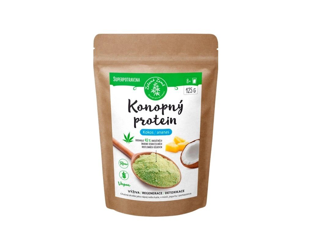 Zelená země Konopný protein 125 g - kokos s ananasem